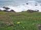 tausenden kleinen Blumen bewachsenen Hügel am Meer.